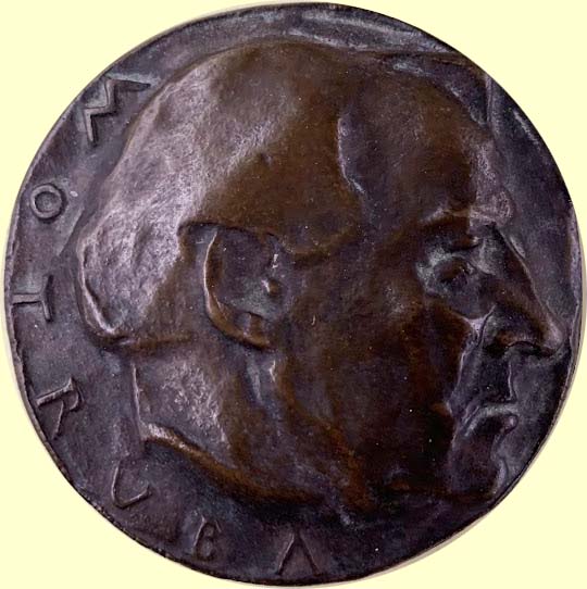 en face. Kz. De Zaaier (uit de Ettense periode). Brons gegoten 79,5 mm., KB VI-3795a. Prachtig. € 175,00 |
