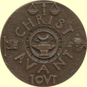 voor Penningkunst. Vz. symbolische weergave van vrede met een