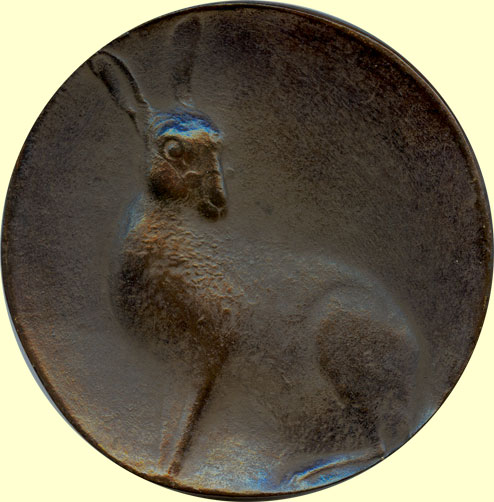drie regels. Brons gegoten 71 x 74 mm. HS pag. 471 e.v. Prachtig. 80,00 |
