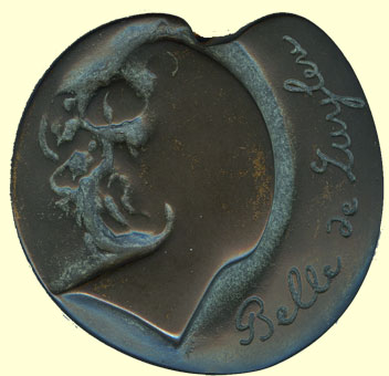 silhouet van Van Zuylen naar rechts. Kz. impressie kasteel Zuylen. Brons gegoten 72-74 mm. HS pag.507 e.v. Prachtig. 100,00 |